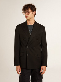 Golden Goose Men Black Double-Breasted Jacket With Peak Lapels In Virgin Wool Man