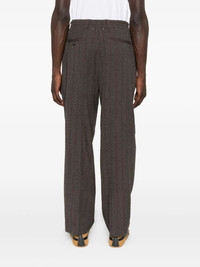 Men's joggers in dark brown wool with thin striped pattern