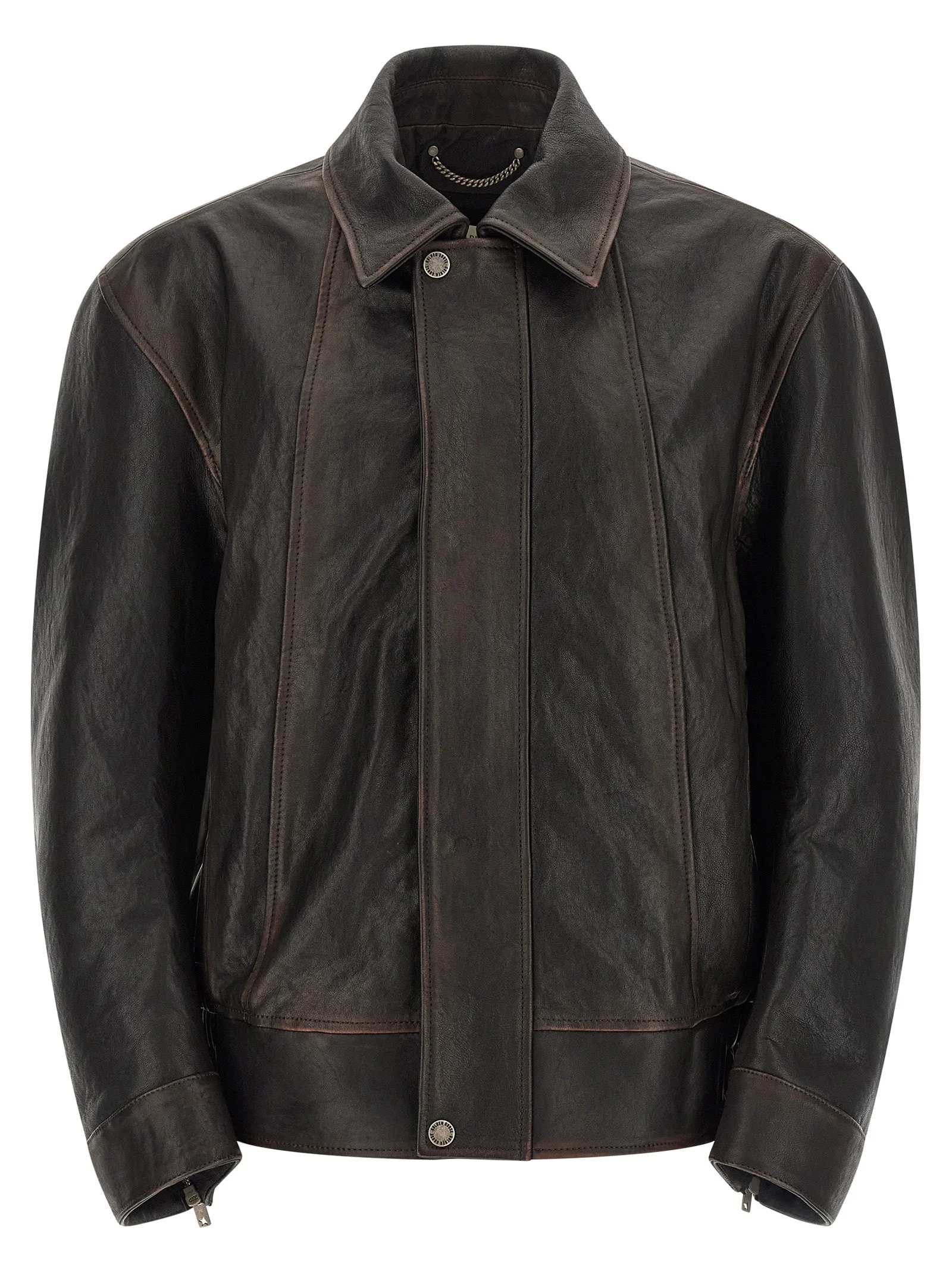'Prince' leather bomber jacket with shirt collar, front zip closure, elastic waistband, long sleeves with cuffs and zip. True to size fit 100% ovine leather (Ovis Aries Aries) SKU: GMP02531P0023014024940249 Our Products Are 100% Genuine. In All Cases We Stand By The Authenticity Of Every Product Sold On Our Site. All sales are final and we only accept returns for quality issue. Buyer is responsible for any import tax/duty if applicable.
