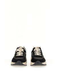Running Sole Distressed Leather, Shell and Suede Sneakers