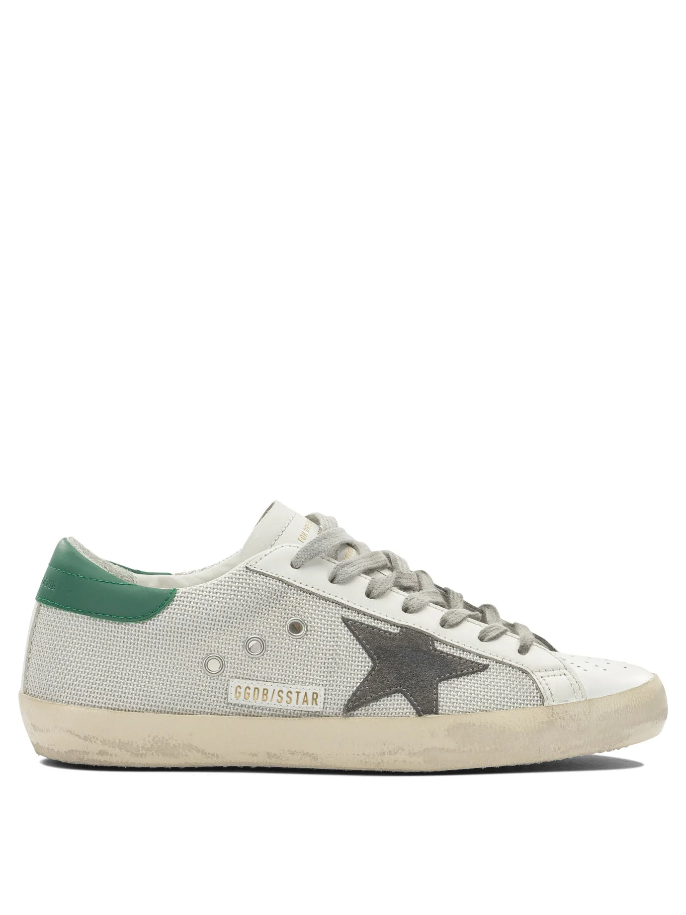Golden Goose "Super-Star" sneaker with mesh upper featuring a lightweight and breathable construction, integrated with tongue and smooth-grain leather inserts for added strength in areas of increased friction. The sneaker is completed with suede detailing on the side, leather heel counter and flat laces. The sole features a low-profile rubber construction, side seam and flexible construction. || - Mesh upper - Suede side star - Leather back heel - Leather tongue and inserts, perforated toe box - Rubber outsole 50% cow leather 50% polyester - 100% rubber SKU: GMF00101F00268670215 Our Products Are 100% Genuine. In All Cases We Stand By The Authenticity Of Every Product Sold On Our Site. All sales are final and we only accept returns for quality issue. Buyer is responsible for any import tax/duty if applicable.