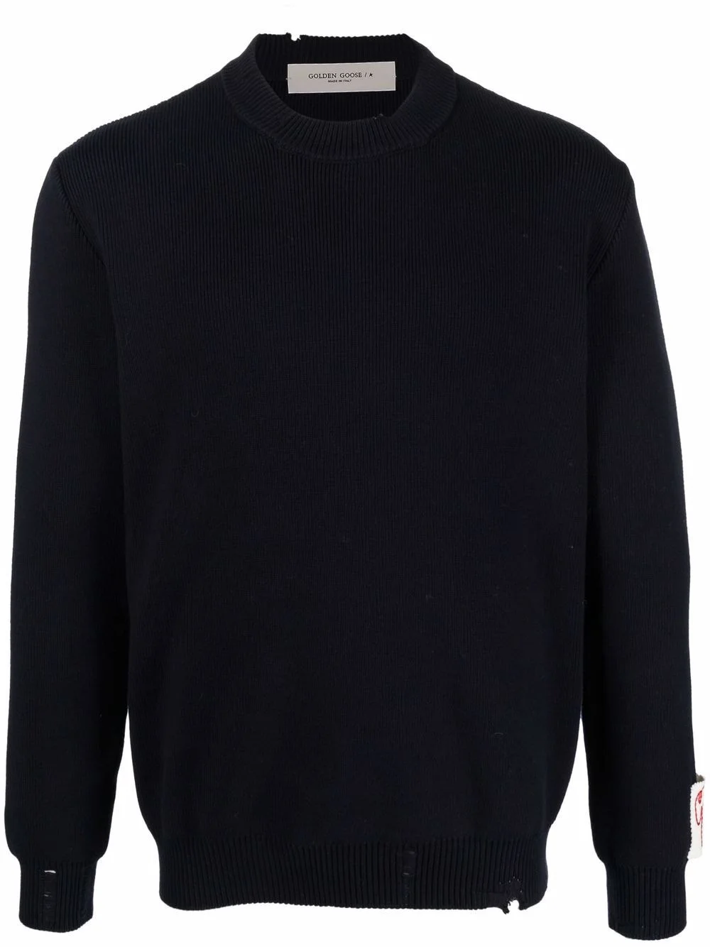 DESCRIPTION ::GOLDEN GOOSE blue cotton sweater with a worn-in look, featuring ribbed detail, a crew neck and long sleeves.MADE IN::ItalyCOLOR::NAVY SKU: GMP00839P00066250486NAVY Our Products Are 100% Genuine. In All Cases We Stand By The Authenticity Of Every Product Sold On Our Site. All sales are final and we only accept returns for quality issue. Buyer is responsible for any import tax/duty if applicable.
