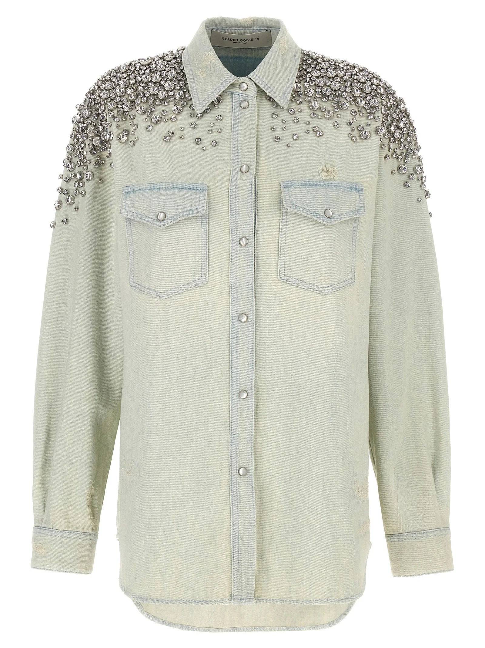 Women's bleached boyfriend shirt with cabochon crystals
