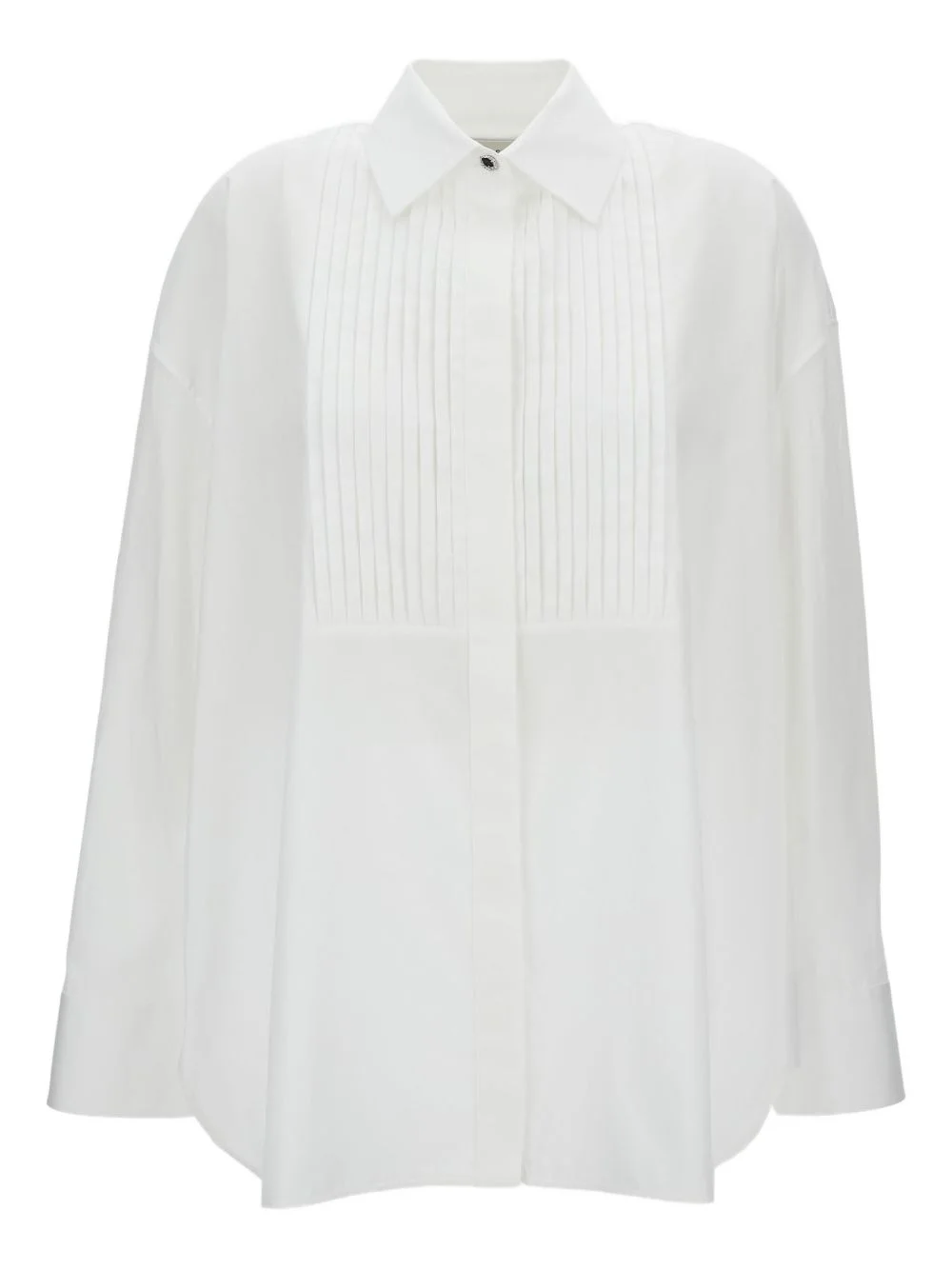 Women's oversized shirt in white cotton with pleated detail and jewel buttons