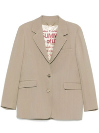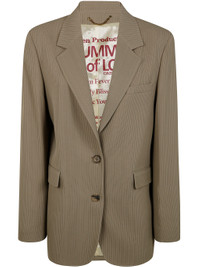 Women's beige pinstripe single-breasted jacket with an oversized fit