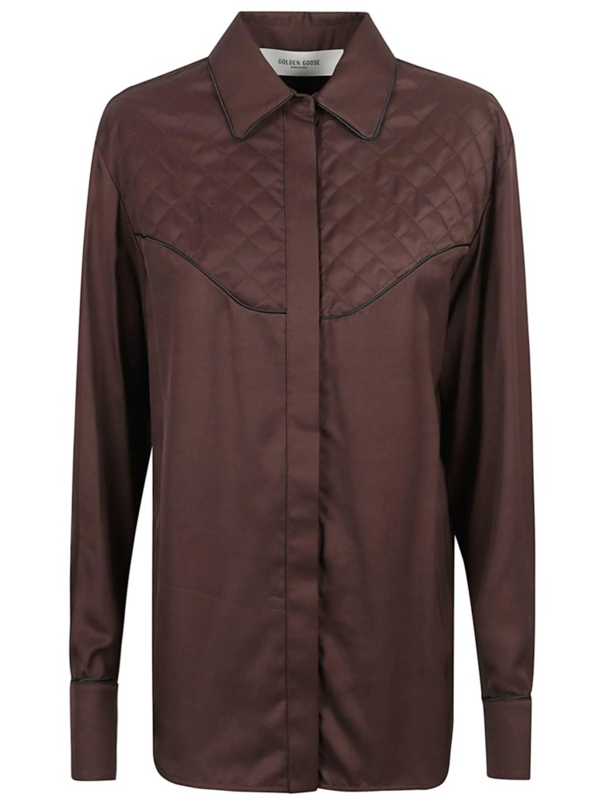 DESCRIPTION ::Brown GOLDEN GOOSE shirt with quilted details in viscose, featuring quilted details on the upper part of the garment and on the collar and two half stars typical of the brand on the back.MADE IN::ItalyCOLOR::BROWN SKU: GWP02358P00136955259BROWN Our Products Are 100% Genuine. In All Cases We Stand By The Authenticity Of Every Product Sold On Our Site. All sales are final and we only accept returns for quality issue. Buyer is responsible for any import tax/duty if applicable.