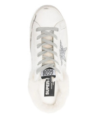 Super-Star Sabots in white leather with shearling lining and silver star
