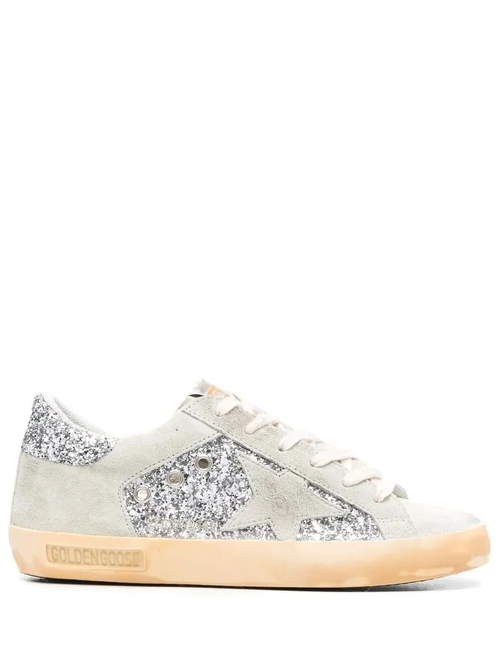 Super-Star sneakers in silver glitter with ice-gray suede star and inserts