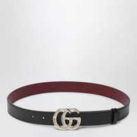 Gucci Black Leather Belt With Bamboo Gg Marmont Buckle Women