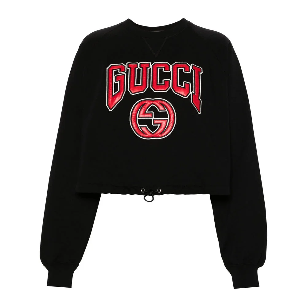 black/red cotton jersey fleece applique logo crew neck long raglan sleeves ribbed cuffs drawstring hem croppedMADE IN:ItalyMATERIAL:Cotton: 100.0%COLOR:BLACK SKU: 760366XJF0W1043 Our Products Are 100% Genuine. In All Cases We Stand By The Authenticity Of Every Product Sold On Our Site. All sales are final and we only accept returns for quality issue. Buyer is responsible for any import tax/duty if applicable.