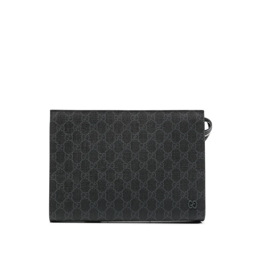 midnight blue calf leather grained texture coated finish GG Supreme canvas signature Interlocking G logo detachable wrist strap main compartment internal card slots top zip fastening This piece comes complete with a protective dust bag.MADE IN:ItalyMATERIAL:Outer Composition Calf Leather: 100.0%COLOR:BLUE SKU: 768255FACQC1048 Our Products Are 100% Genuine. In All Cases We Stand By The Authenticity Of Every Product Sold On Our Site. All sales are final and we only accept returns for quality issue. Buyer is responsible for any import tax/duty if applicable.