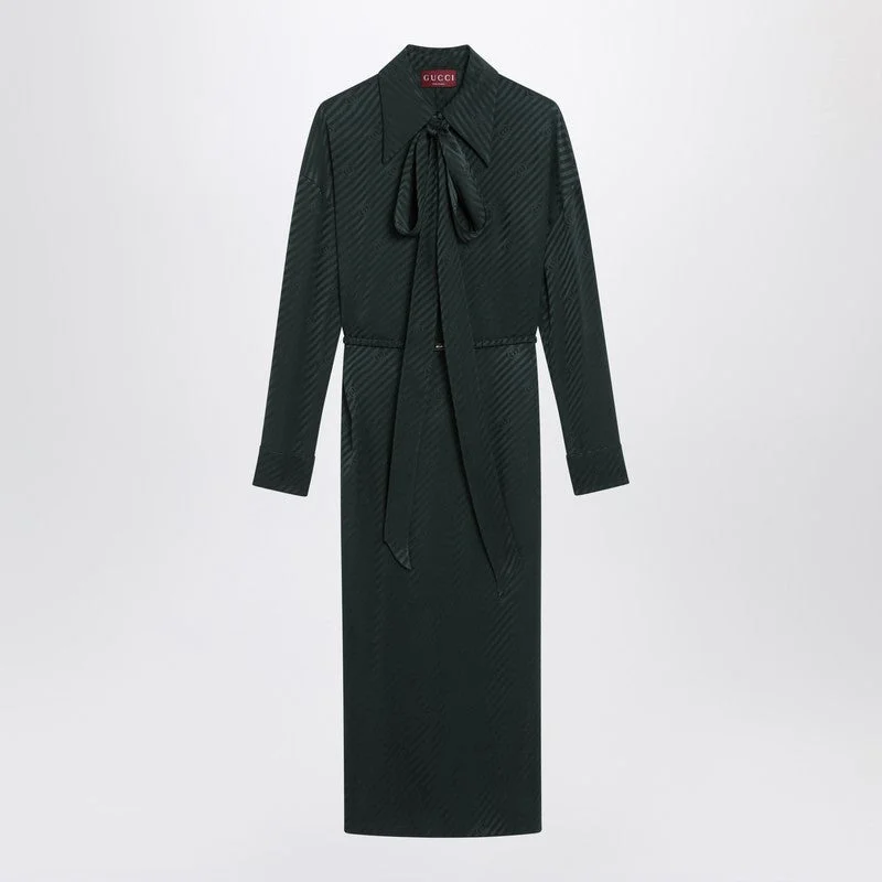 Gucci Green Gg Jacquard Silk Wrap Dress Women