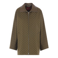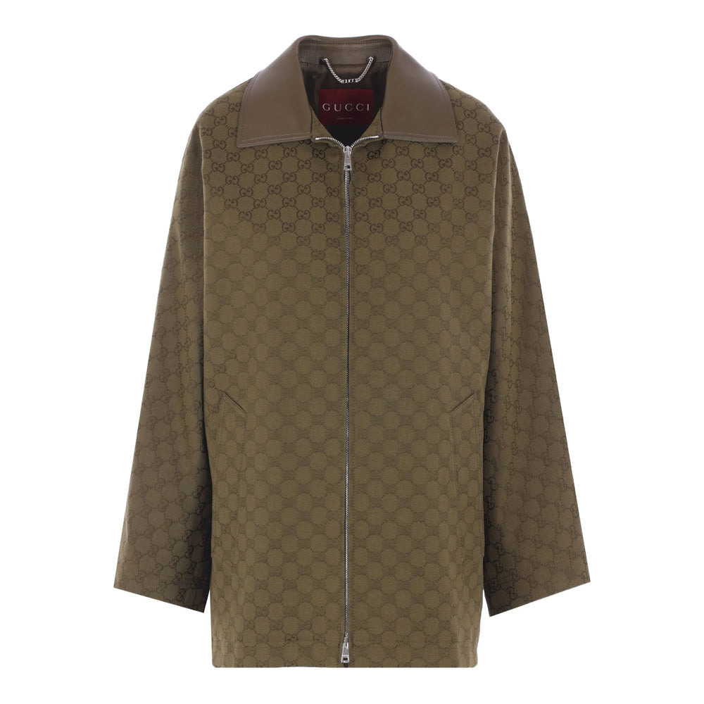 olive green GG monogram pattern zip front fastening leather collar long sleeves MADE IN:ItalyMATERIAL:Leather: 100.0%, Canvas: 100.0%COLOR:GREEN SKU: 826626Z8B1O3602 Our Products Are 100% Genuine. In All Cases We Stand By The Authenticity Of Every Product Sold On Our Site. All sales are final and we only accept returns for quality issue. Buyer is responsible for any import tax/duty if applicable.