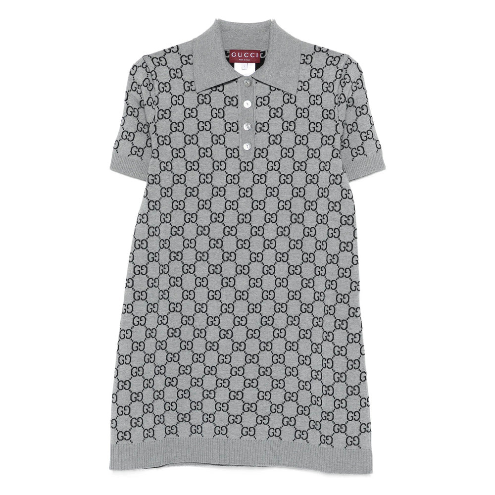 Wool jacquard polo dress with GG Shadow