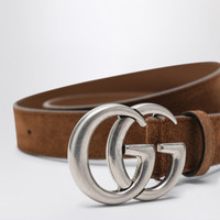Gucci Hazelnut Suede Belt With Gg Marmont Buckle Men