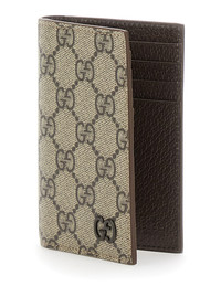 Gucci Men Beige Card Holder With All-Over Gg Motif And Logo On The Front In Fabric Man