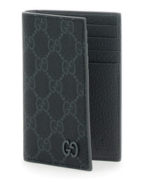 Gucci Men Black Card Holder With All-Over Gg Motif And Logo On The Front In Fabric Man