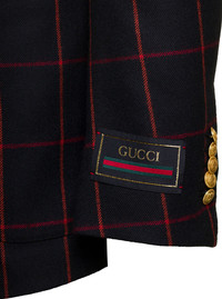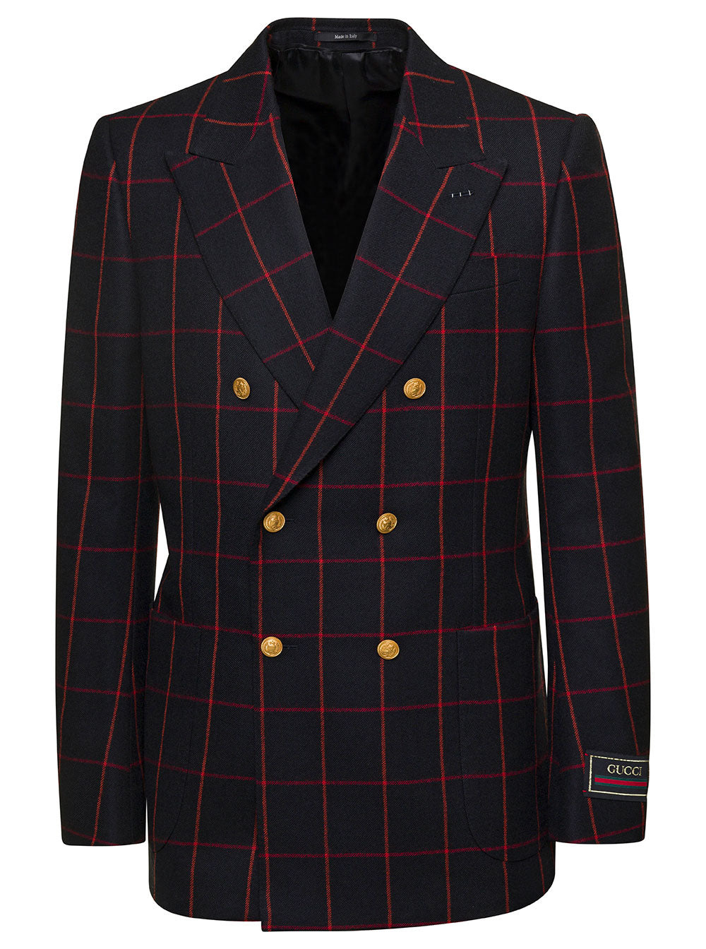 Gucci Men Black Double-Breasted Jacket With Check Motif In Wool Man