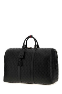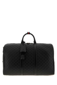 Gucci Men Black Leather Gg Emblem Duffle Bag