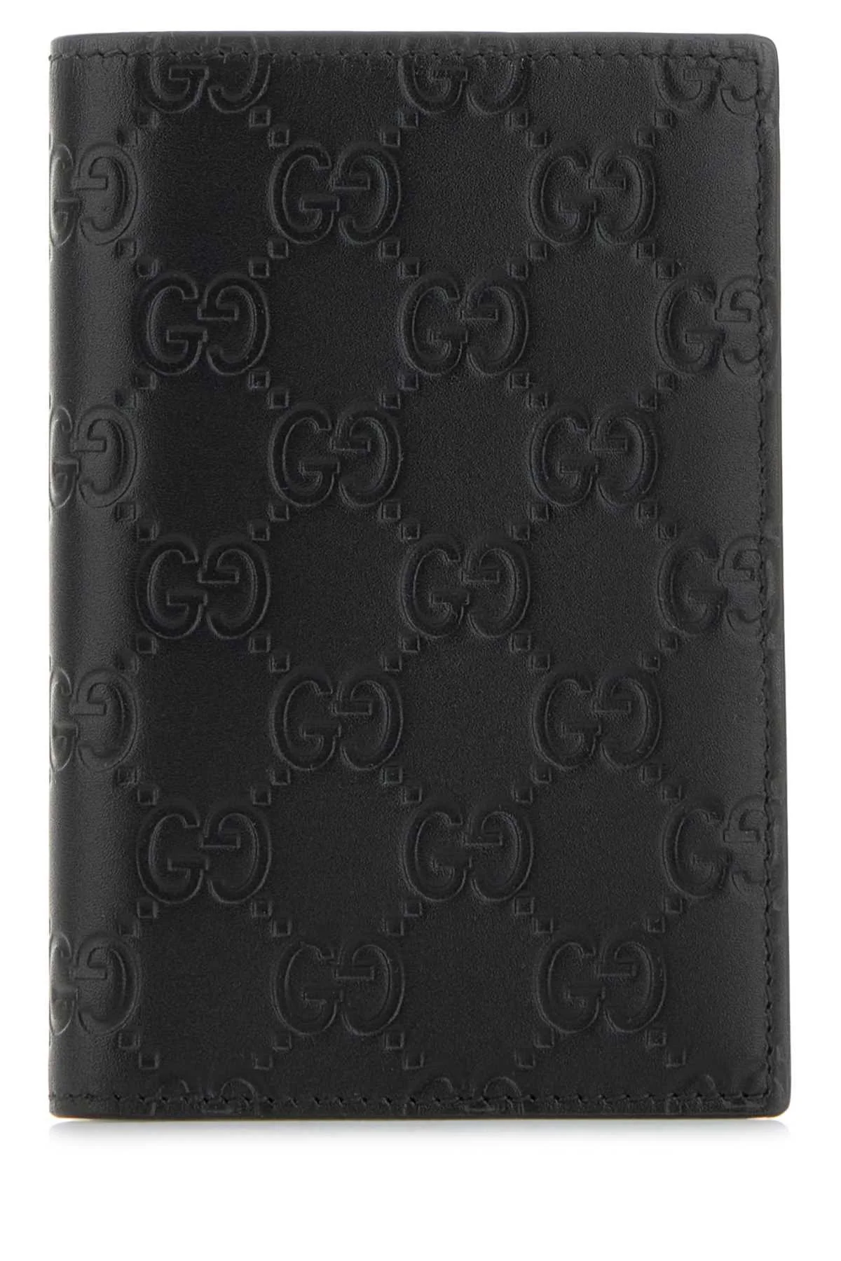 Gucci Men Black Leather Gg Emblem Passport Holder
