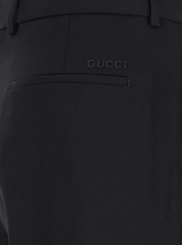 Gucci Men Black Straight Pants With Tonal Logo Lettering In Wool Man