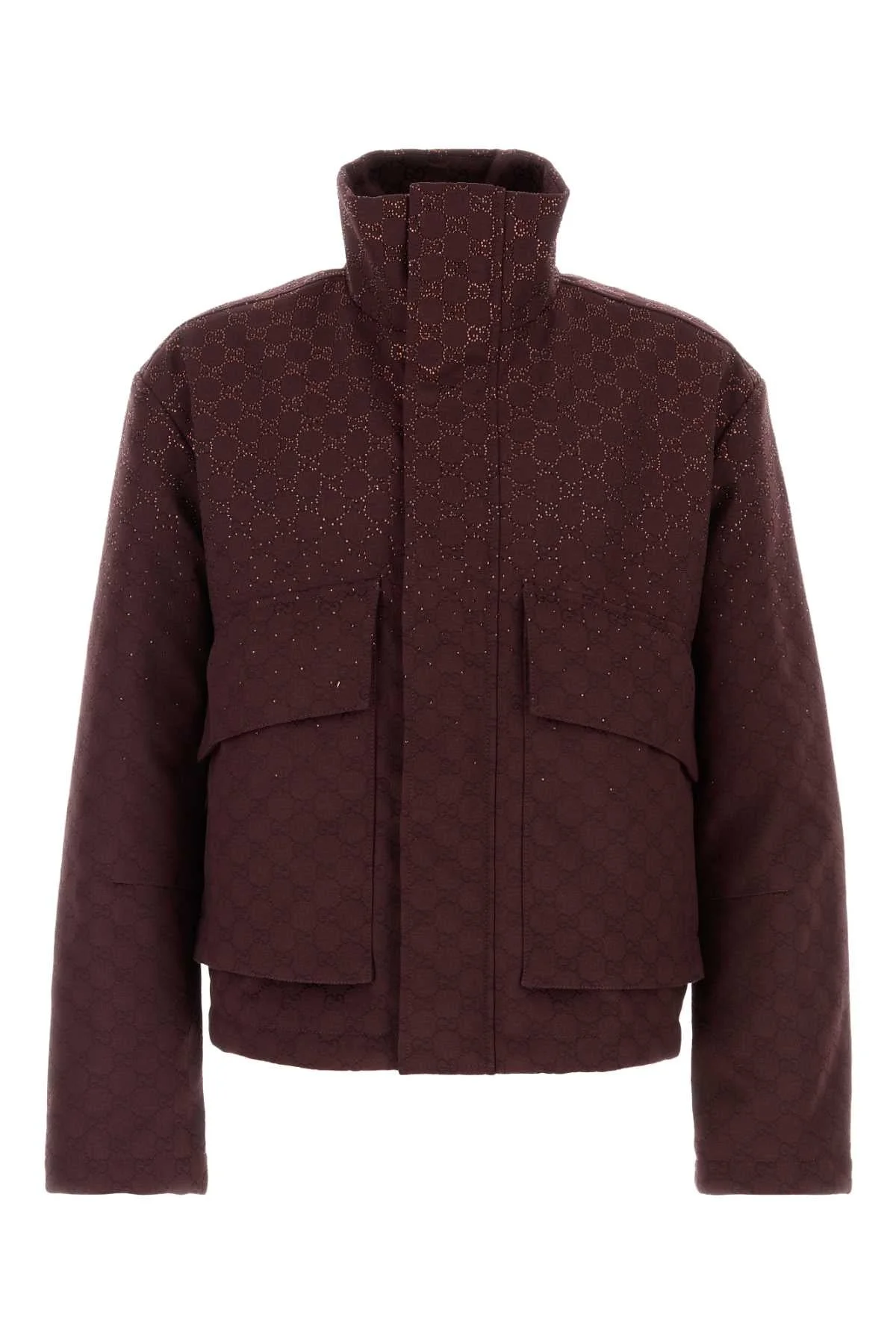 Gucci Men Burgundy Gg Fabric Padded Jacket
