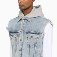 Gucci vest in blue denim with a button closure on the front, a Hollywood Babylon patch on the back, raw-cut edges, front pockets and an adjustable drawstring hood. Material: Denim. Size Type: IT SKU: 697042XDB0U This is a final sale clearance product. Our Products Are 100% Genuine. In All Cases We Stand By The Authenticity Of Every Product Sold On Our Site. All sales are final and we only accept returns for quality issue. Buyer is responsible for any import tax/duty if applicable.