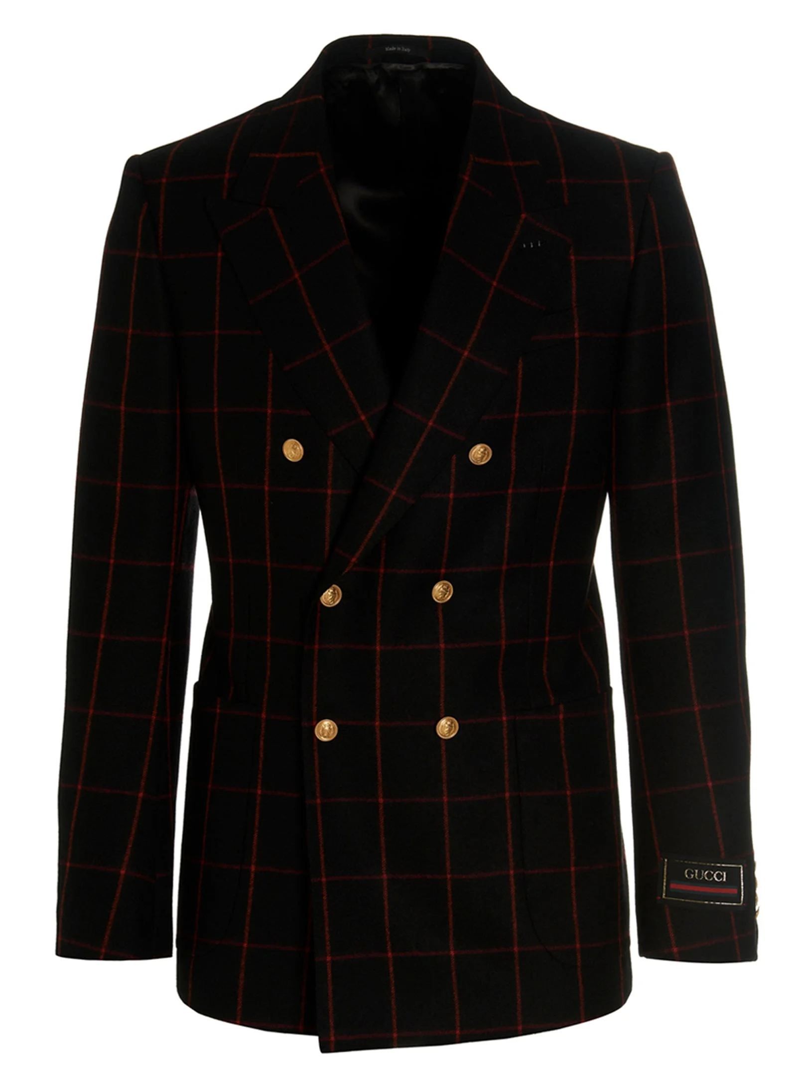 Double-breasted black and red check blazer in wool with Gucci web tape on the sleeve, button closure with gold rider, three front pockets, peak lapels, back vent. a back split. True to size fit 100% wool SKU: 730305ZAL2E1072 Our Products Are 100% Genuine. In All Cases We Stand By The Authenticity Of Every Product Sold On Our Site. All sales are final and we only accept returns for quality issue. Buyer is responsible for any import tax/duty if applicable.