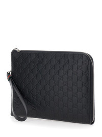 Gucci Men 'Emblem' Black Clutch Bag With All-Over Embossed Gg Logo In Leather Man