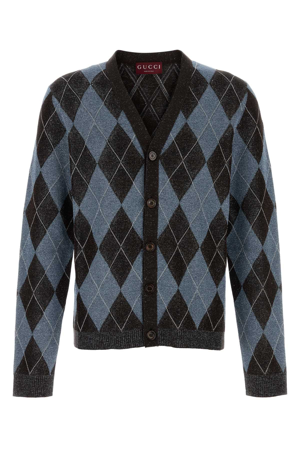 Gucci Men Embroidered Stretch Wool Blend Cardigan