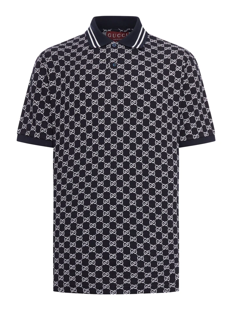- Navy and white GG jacquard cotton pique - Striped polo collar - Short sleeves - Button closure - Regular fit Made in Italy Composition: Cotton 100% Cotton Color code: 4137 NAVY WHITE 788024XJHH7 Carryover SKU: Carryover4137NAVYWHITE Our Products Are 100% Genuine. In All Cases We Stand By The Authenticity Of Every Product Sold On Our Site. All sales are final and we only accept returns for quality issue. Buyer is responsible for any import tax/duty if applicable.