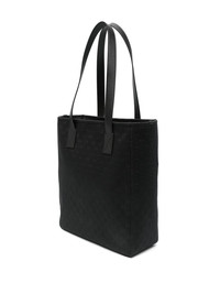 Neo Leather and Grosgrain-Trimmed Monogrammed Cotton-Canvas Tote Bag Black