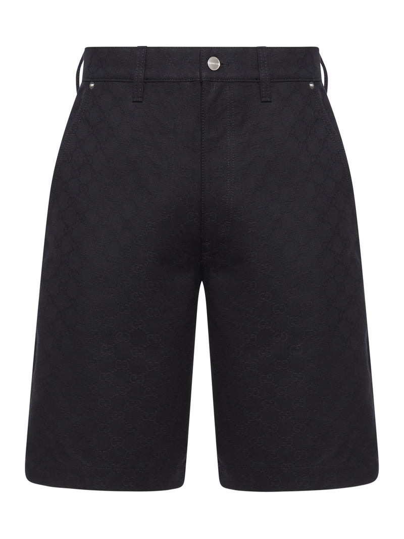 - Tone-on-tone all-over GG monogram - Belt loops - Metal button and zip fastening - Back patch pockets with double stitching and metal rivets - Side cargo-style pocket - ??Regular waist - Straight fit, above-the-knee length - Black Made in Italy Composition: Cotton 100% cotton Color code: 1000 BLACK Size Type: IT SKU: 832377XDDCG Our Products Are 100% Genuine. In All Cases We Stand By The Authenticity Of Every Product Sold On Our Site. All sales are final and we only accept returns for quality issue. Buyer is responsible for any import tax/duty if applicable.