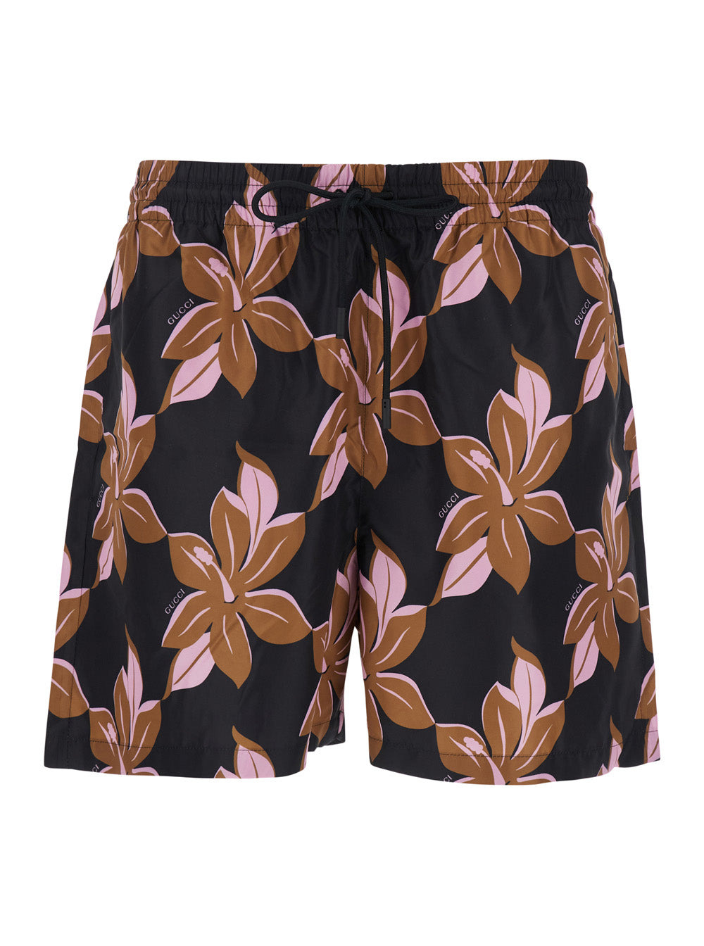 Gucci Men Multicolor Swimsuit With Drawstring And All-Over Floral Print In Tech Fabric Man