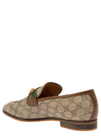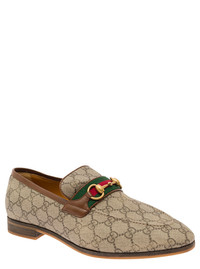 Gucci Men 'Paride' Beige Loafers With Horsebit And Web Detail In Gg Supreme Canvas Man