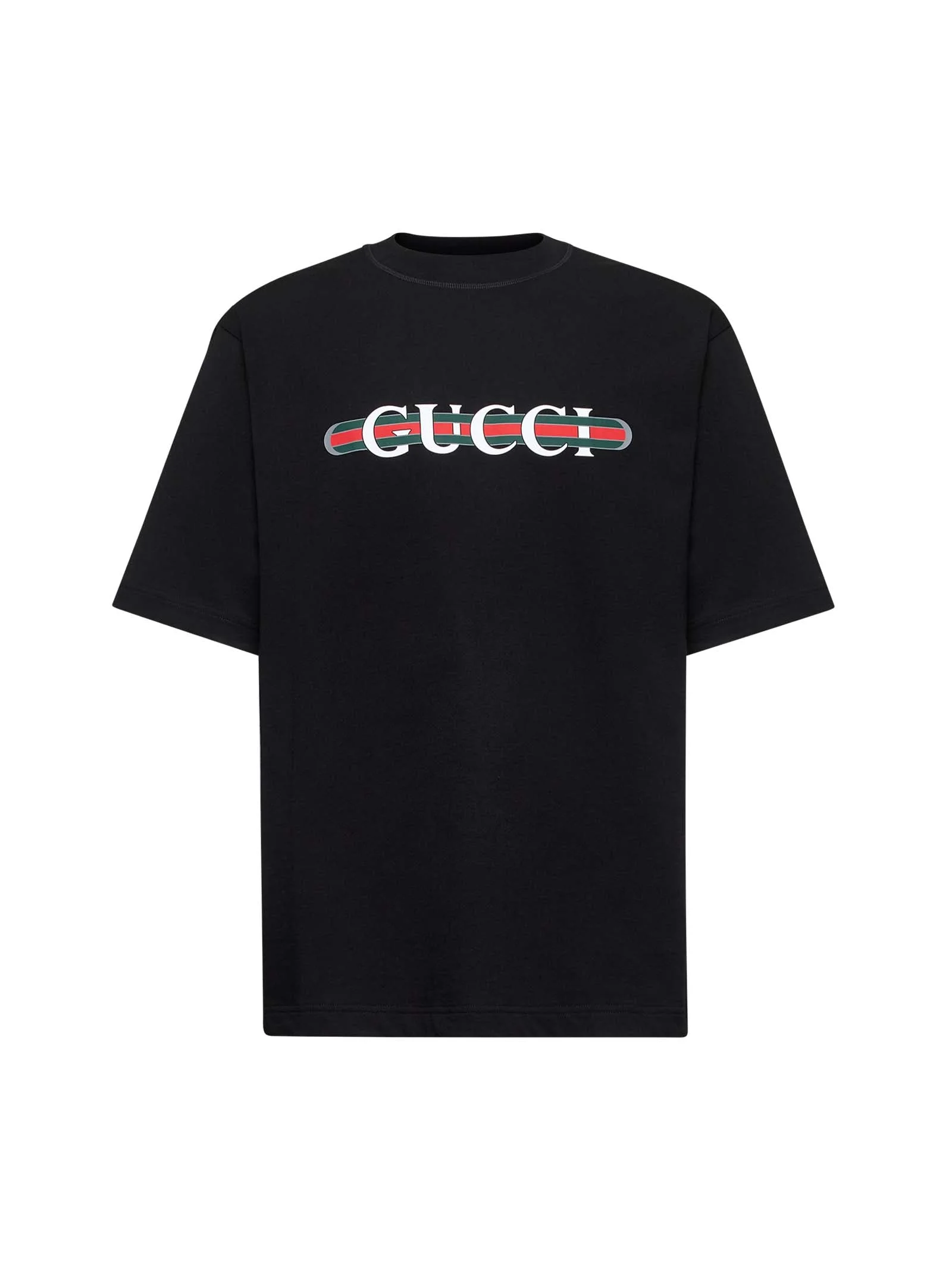 •Black heavyweight cotton jersey •Gucci Web print •Crew neck •Dropped shoulders •Short sleeves •100% cotton •Made in Italy SKU: 784361xjgte1152 Our Products Are 100% Genuine. In All Cases We Stand By The Authenticity Of Every Product Sold On Our Site. All sales are final and we only accept returns for quality issue. Buyer is responsible for any import tax/duty if applicable.