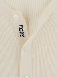 Top White Crewneck Long sleeves Front button closure Tonal buttons Contrasting logo lettering embroidery Web detail on cuffs and hem Ribbed knit Silk Fitted shape SKU: 792759XKEAH9060 Our Products Are 100% Genuine. In All Cases We Stand By The Authenticity Of Every Product Sold On Our Site. All sales are final and we only accept returns for quality issue. Buyer is responsible for any import tax/duty if applicable.