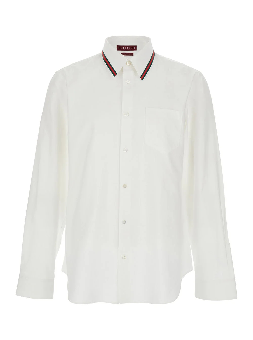 Gucci Men White Shirt With Web Collar In Cotton Man
