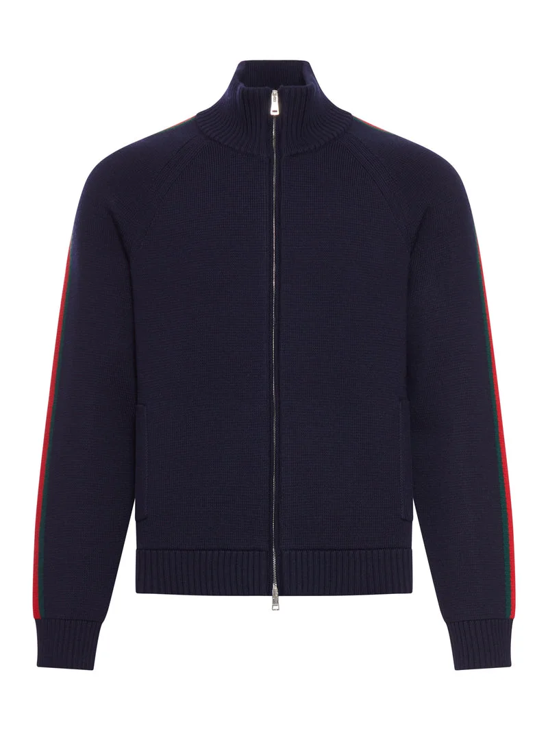Gucci Men Wool Jacket With Zip And Side Web Band