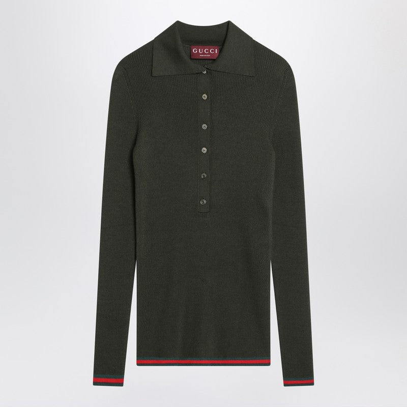 Gucci Military Green Polo In Cashmere And Silk Women