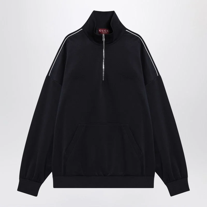 Gucci sweatshirt in navy blue technical jersey characterized by a zip collar white trim long sleeves a front kangaroo pocket tone-on-tone embossed logo lettering on the chest and ribbed edges. Size Type: INT Material: Polyester SKU: 833488XJHEK/RGUC4140323 Our Products Are 100% Genuine. In All Cases We Stand By The Authenticity Of Every Product Sold On Our Site. All sales are final and we only accept returns for quality issue. Buyer is responsible for any import tax/duty if applicable.