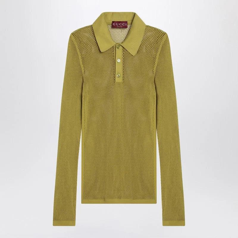 Gucci Pistachio Green Perforated Technical Knit Polo Men