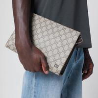 Gucci Small Pouch In Gg Fabric Beige/Ebony Men