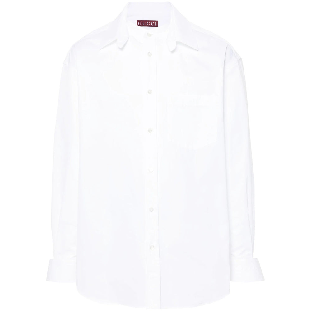 white cotton poplin texture band collar detachable classic collar drop shoulder long sleeves with buttoned cuffs embossed logo to the cuff chest patch pocket rear pleat detailing curved hem front button placketMADE IN:ItalyMATERIAL:Cotton: 100.0%COLOR:WHITE SKU: 787538ZAQQS9000 Our Products Are 100% Genuine. In All Cases We Stand By The Authenticity Of Every Product Sold On Our Site. All sales are final and we only accept returns for quality issue. Buyer is responsible for any import tax/duty if applicable.