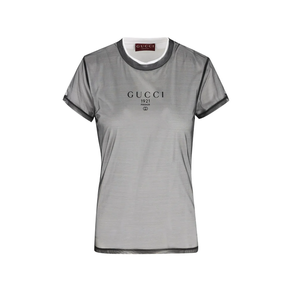 white double layered Interlocking G print crewneck short sleevesMADE IN:ItalyMATERIAL:Cotton: 50.0%, Modal: 50.0%COLOR:WHITE SKU: 856822XJHQ59097 Our Products Are 100% Genuine. In All Cases We Stand By The Authenticity Of Every Product Sold On Our Site. All sales are final and we only accept returns for quality issue. Buyer is responsible for any import tax/duty if applicable.