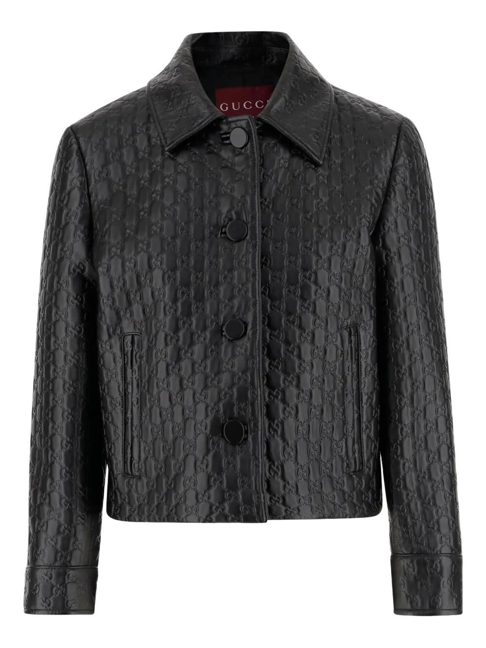 Gucci Women `All Over Gg` Embossed Leather Jacket