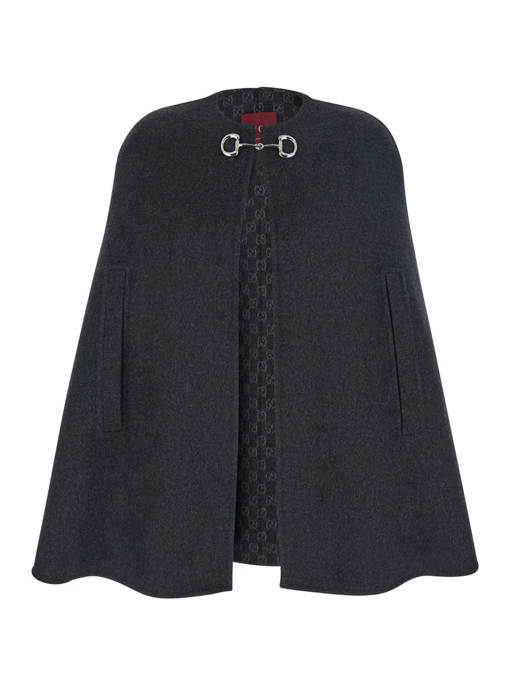 Cape Black Round neck Claw clasp closure on the front Side arm slits GG motif inside Wool and silk SKU: 852796ZAQW01179 Our Products Are 100% Genuine. In All Cases We Stand By The Authenticity Of Every Product Sold On Our Site. All sales are final and we only accept returns for quality issue. Buyer is responsible for any import tax/duty if applicable.
