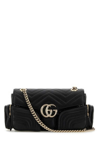 Gucci Women Black Leather Small Gg Marmont Shoulder Bag