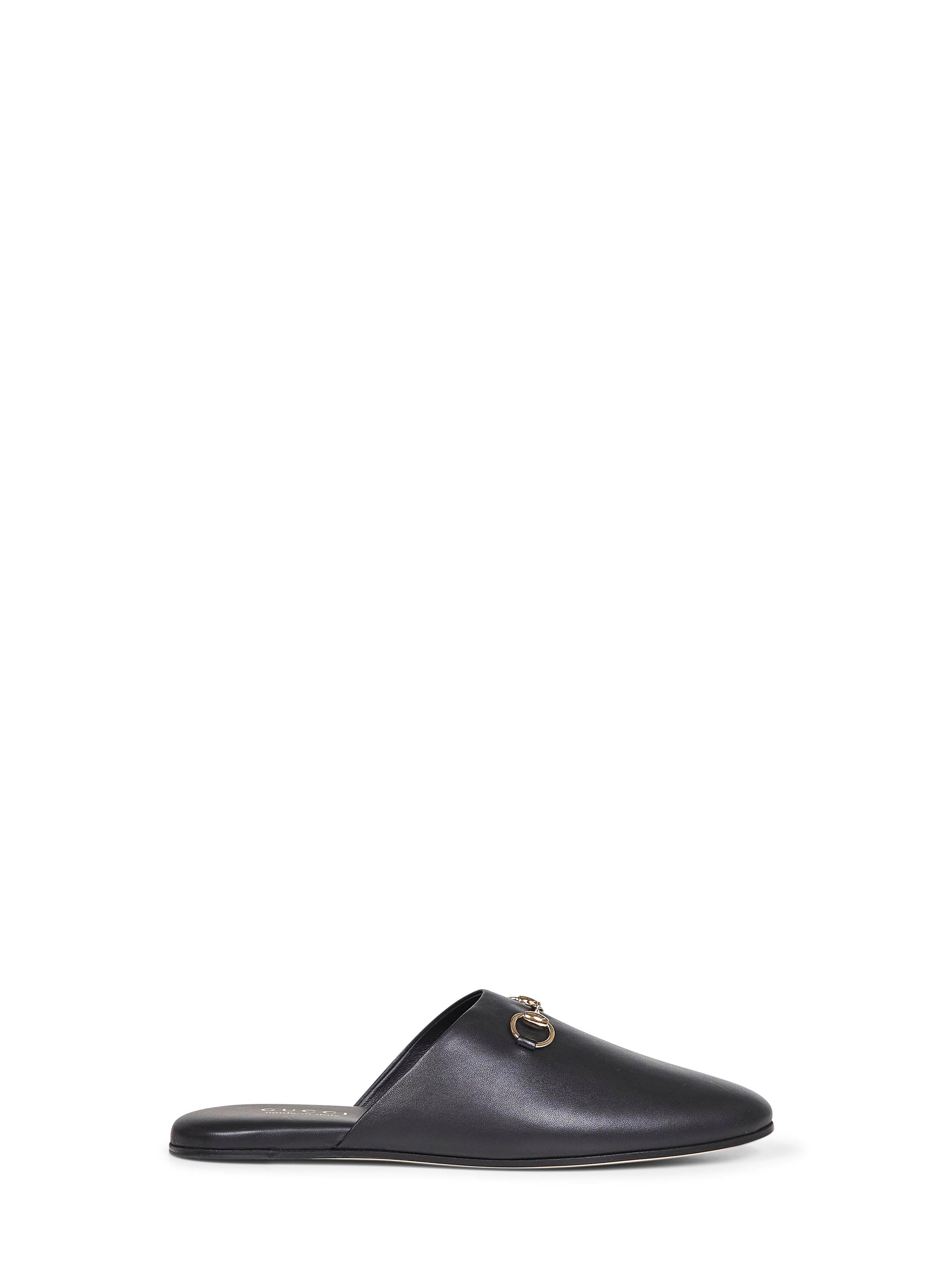 Gucci Women Black Nappa Leather Mules With Horsebit