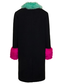 Gucci Women Black Single-Breasted Coat With Detachable Shearling Collar And Cuff In Wool And Cashmer